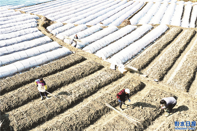1月13日,在走馬鄉(xiāng)樓房村,村民正在忙著育天門(mén)冬苗。