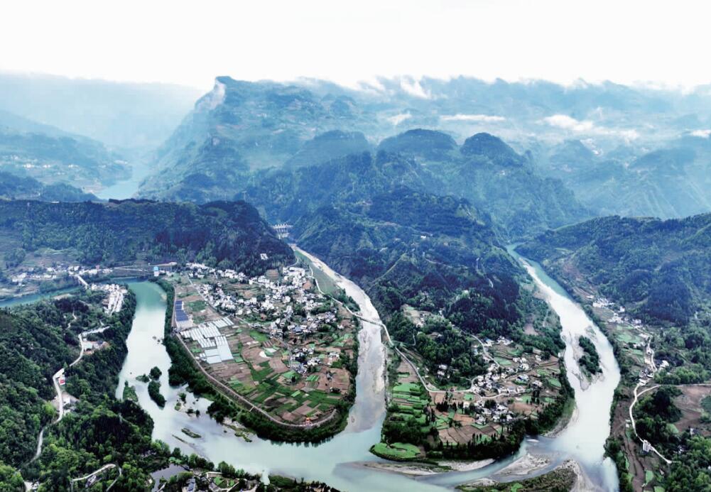 晨霧籠罩下的高谷鎮(zhèn),青山、碧水、橋梁、建筑等共同構(gòu)成一幅幅美麗的鄉(xiāng)村畫卷。