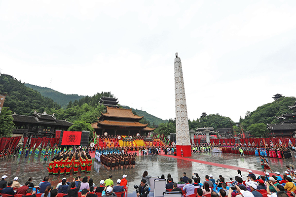5月19日,辛丑年彭水民間祭祀蚩尤典禮舉行,來自世界各地的百苗后裔相聚在蚩尤九黎城,虔誠表達對中華人文先祖之一蚩尤的景仰與感恩之情。