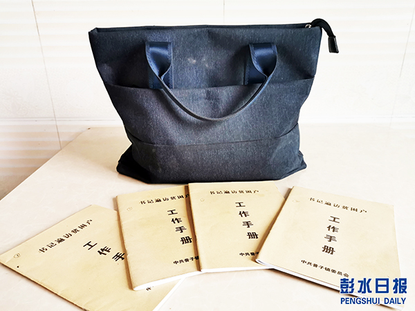 王珍洪生前用的公文包和書記遍訪貧困戶工作手冊。全媒體記者 李亞軍 攝影