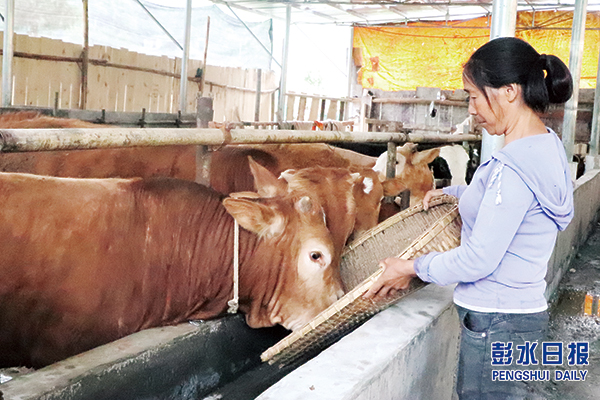 中國彭水網(wǎng)(全媒體記者 楊春燕 文/圖)5月20日,在郁山鎮(zhèn)陳家園村4組,一個簡易的鋼架牛棚內(nèi),村民鄭遠(yuǎn)文和妻子黃義成正在忙著給牛喂食。