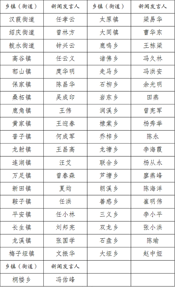 彭水縣新聞發(fā)言人名單(鄉(xiāng)鎮(zhèn))