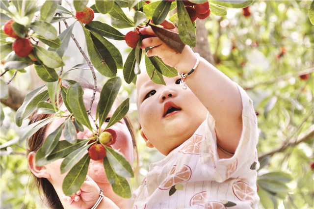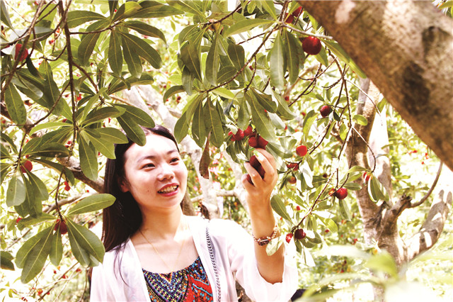“楊梅能采摘一個(gè)月,一直持續(xù)到7月中旬,現(xiàn)在價(jià)格為15元一斤?!毙鞓涮谜f(shuō),現(xiàn)在每天都許多市民駕車來(lái)采摘,一天能收入1000元左右。