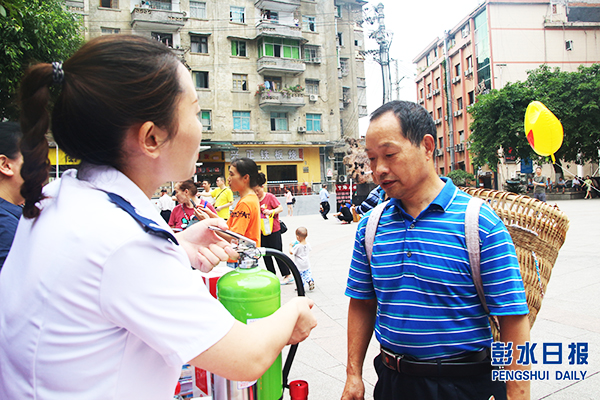 中國(guó)彭水網(wǎng)(融媒體記者 趙 琴 攝影)6月16日,縣安委會(huì)組織全縣安委會(huì)成員單位和重點(diǎn)(相關(guān))企業(yè)共26個(gè)單位,分別在澳華廣場(chǎng)和商貿(mào)園廣場(chǎng)開展全國(guó)第19個(gè)安全生產(chǎn)月咨詢?nèi)栈顒?dòng),通過(guò)宣傳展板、發(fā)放安全生產(chǎn)宣傳手冊(cè)等方式,現(xiàn)場(chǎng)為群眾開展安全生產(chǎn)知識(shí)宣傳和安全生產(chǎn)咨詢,引導(dǎo)群眾筑牢安全防線。圖為在商貿(mào)園廣場(chǎng),工作人員為市民講解滅火器使用方法。