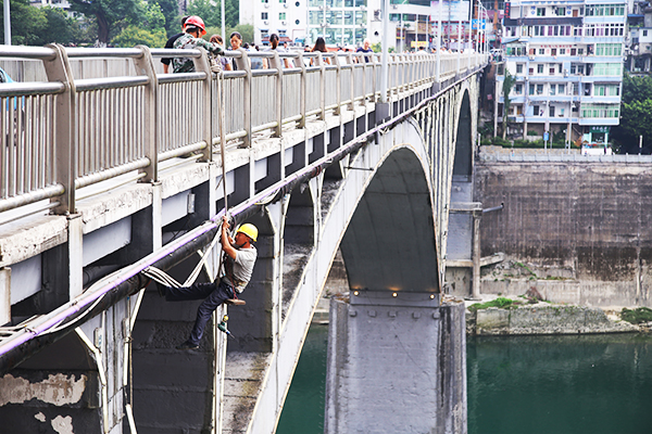 中國(guó)彭水網(wǎng)(融媒體記者 廖唯 攝影)8月20日,工人正在對(duì)南渡沱烏江大橋橋身的燈飾線路進(jìn)行檢修,確保夜景燈飾正常工作。