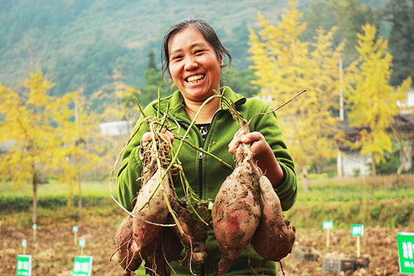 高產(chǎn)的紅薯,讓陳明英很開心。