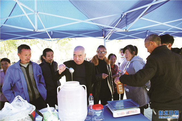中國彭水網(wǎng)(融媒體記者 楊元忠 李 松 攝影)11月13日,靛水街道組織轄區(qū)各村、社區(qū)開展消費扶貧助力鄉(xiāng)村振興活動?;顒又?,手工紅苕粉、土蜂蜜、土雞、老臘肉等優(yōu)質(zhì)土特產(chǎn)深受廣大消費者青睞。