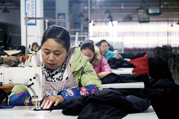 在彭水工業(yè)園區(qū),工人們正在趕制衣服。