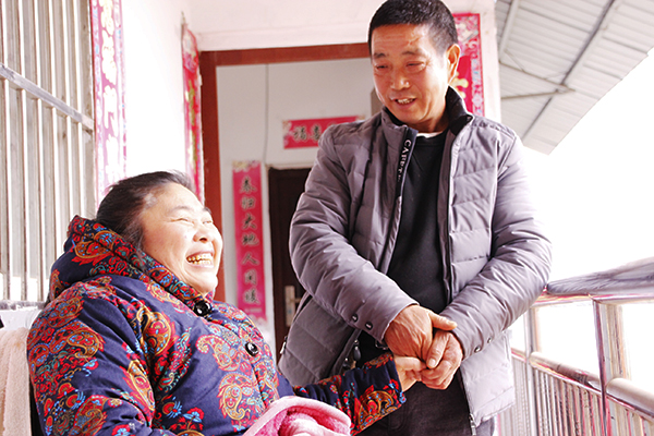 夏天,為了不讓妻子長褥瘡,阮仕合每天都會(huì)給妻子翻身、擦洗。冬天,為了能讓妻子暖和,他每天給妻子熱水敷腳。讓阮仕合苦惱的是妻子的生理護(hù)理,稍不留意,床單、被褥就被妻子的排泄物弄臟。但他總是不厭其煩地清洗、更換。日復(fù)一日,年復(fù)一年,阮仕合從未放棄。