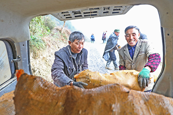 村民在搬運中藥材。 融媒體記者 趙 勇 攝影
