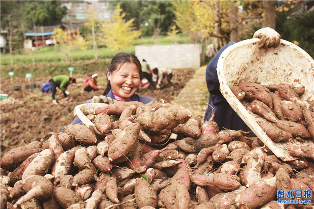 郁山鎮(zhèn)地處武陵山區(qū),地形復(fù)雜,土地中富含礦物質(zhì)鹽,長(zhǎng)出的紅薯個(gè)大、味甜。郁山鎮(zhèn)充分利用這一優(yōu)勢(shì),將紅薯作為農(nóng)民增收脫貧的特色產(chǎn)品打造,以“公司+合作社+基地+農(nóng)戶”的產(chǎn)業(yè)幫扶新模式,帶動(dòng)當(dāng)?shù)刎毨粼鍪铡?/span>