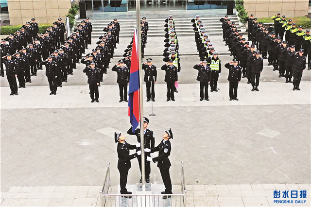 中國彭水網(wǎng)(融媒體記者 趙 勇 廖凱易) 2021年1月10日是首個中國人民警察節(jié)。當(dāng)天上午,縣公安局舉行升警旗儀式、重溫入警誓詞、為從警特定年限民警頒發(fā)紀(jì)念章等活動,慶祝首個中國人民警察節(jié)。