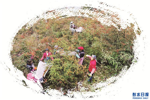 桐樓鄉(xiāng)桐木村村民采摘火棘果。