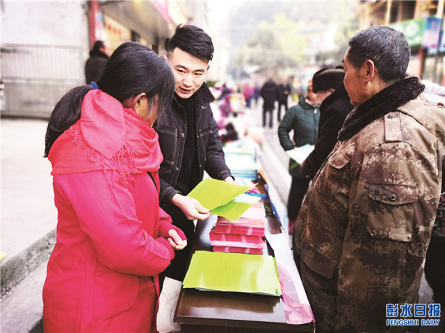 中國彭水網(wǎng)(通訊員 吳小青 攝影)1月12日,鞍子鎮(zhèn)平安辦聯(lián)合鞍子司法所、鞍子派出所利用趕集日集中開展全民反詐專項行動宣傳。圖為工作人員向過往村民發(fā)放宣傳單和講解相關反詐知識。