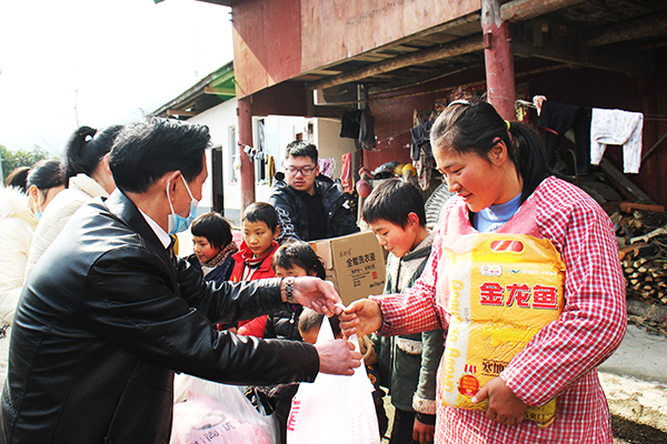 中國彭水網(融媒體記者 任 會 攝影)2月5日,縣家庭教育研究會和漢葭街道商會婦聯(lián)一行人先后來到漢葭街道大樹村和青龍社區(qū)貧困戶王文明和譚會成兩個家庭,給他們送上被子、大米、食用油等生活用品,鼓勵他們要勇于克服困難,對生活要有信心。