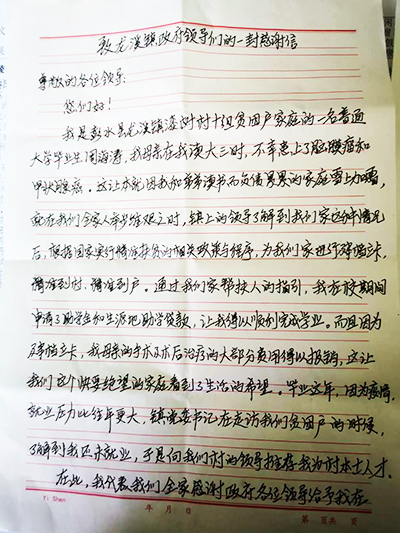 “感謝國家、扶貧辦、龍溪鎮(zhèn)黨委政府對我們家的幫助,感謝您們讓我順利完成學業(yè),幫我們家渡過難關?!敝芎拥卣f,在新的工作崗位,自己會懷著一顆感恩的心,用自己的青春和熱情來報效國家……
