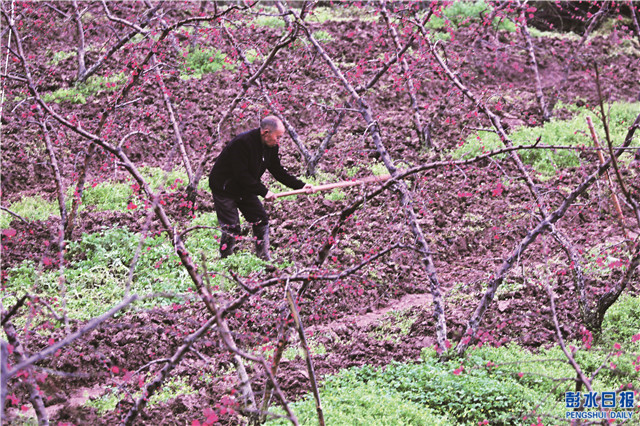 中國彭水網(wǎng)(融媒體記者 趙 勇 攝影)人勤春來早,春耕備耕忙。眼下正是春耕的最佳時期,彭水各鄉(xiāng)鎮(zhèn)田間地頭,處處可見一片春耕備耕的忙碌景象。圖為漢葭街道大樹村村民正在鷹嘴桃種植基地勞作。