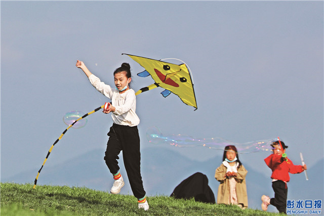 中國彭水網(wǎng)(融媒體記者 楊元忠 趙 勇 攝影)3月13日,在漢葭街道北斗星空夢(mèng)想草場(chǎng),市民們正在放飛風(fēng)箏。當(dāng)天,陽光明媚,不少市民紛紛走出家門,郊游、踏青、賞花、采摘,體驗(yàn)春天的美好。