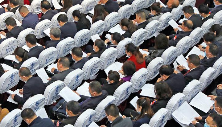 上午8點(diǎn)10分,胡勤儉宣布大會(huì)開幕??h長(zhǎng)石強(qiáng)作政府工作報(bào)告。