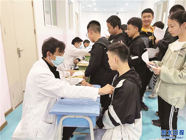 中國彭水網(通訊員 李 季 攝影)連日來,全縣中小學生健康體檢工作有序推進。體檢內容包括測量身高、體重、視力、肺活量、血壓等。醫(yī)務人員對同學們做體檢的同時,還向學生開展健康咨詢,給出有針對性的保健意見,普及衛(wèi)生保健知識,培養(yǎng)學生形成良好的衛(wèi)生習慣。圖為保家鎮(zhèn)中心衛(wèi)生院醫(yī)務人員為彭水第一中學學生體檢。