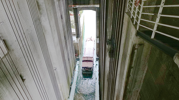 5月12日,一艘500噸級貨輪正緩緩駛過大唐烏江彭水電站船閘。據(jù)了解,大唐烏江彭水電站通航系統(tǒng),按照Ⅳ級航道500噸級規(guī)模設(shè)計,由一級船閘、中間渠道和一級垂直升船機組成。