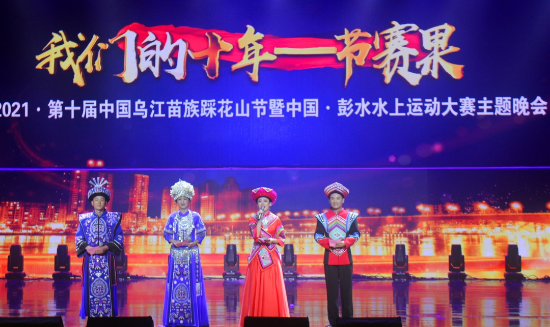 重慶彭水網(wǎng)(融媒體記者 唐 源 喻 琢 /文 唐 源/圖) 5月18日晚,“我們的十年——節(jié)賽果”2021·第十屆中國烏江苗族踩花山節(jié)暨中國·彭水水上運(yùn)動大賽主題晚會在縣民族會場舉行。
