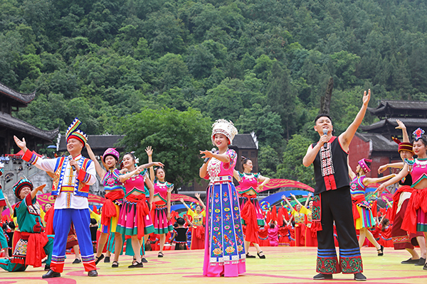 5月19日,2021·第十屆中國烏江苗族踩花節(jié)在蚩尤九黎城盛大開幕。上萬苗鄉(xiāng)兒女齊聚一堂,歡聚蚩尤九黎城,共赴踩花山節(jié),同唱嬌阿依,共舞踩花山,共同歡慶苗族民間盛大傳統(tǒng)節(jié)日。