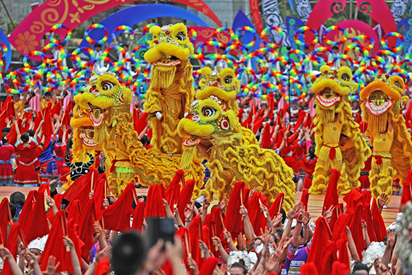 鼓是精神的象征,舞是力量的表現(xiàn)。在陣陣歡呼聲、喝彩聲中,民俗精粹展演《苗鼓飛揚》《龍騰獅躍》《激情蘆笙》輪番上演,將苗鼓、舞獅、蘆笙等非遺文化,以大眾所喜聞樂見的舞蹈藝術(shù)形式生動形象的表現(xiàn)出來,為觀眾呈現(xiàn)一場視覺上的文化盛宴。