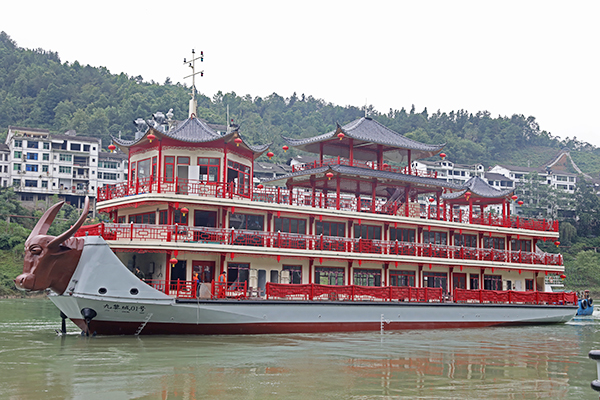 目前,“九黎城01號”正處于調(diào)試階段,將于7月1日正式運營。該游船獨特的外觀設(shè)計、完善的配套服務(wù)加上彭水烏江絕美的自然風(fēng)光,將會給游客帶來非同尋常的苗鄉(xiāng)之旅。