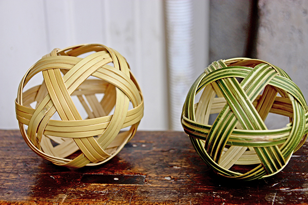 僅憑一把蔑刀、一根竹子,在寧生明的手中開始不斷變換,或成絲、或成片,不多時(shí),就成了一間精美的竹藝品。