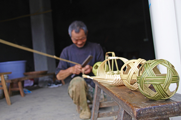 初夏的雨下得特別勤,淅淅瀝瀝的小雨把村民都困在了家里,或看電視、或串門打發(fā)時(shí)間。而對(duì)寧生明來(lái)說(shuō),下雨天也有重要的事要做——編織竹藝品。