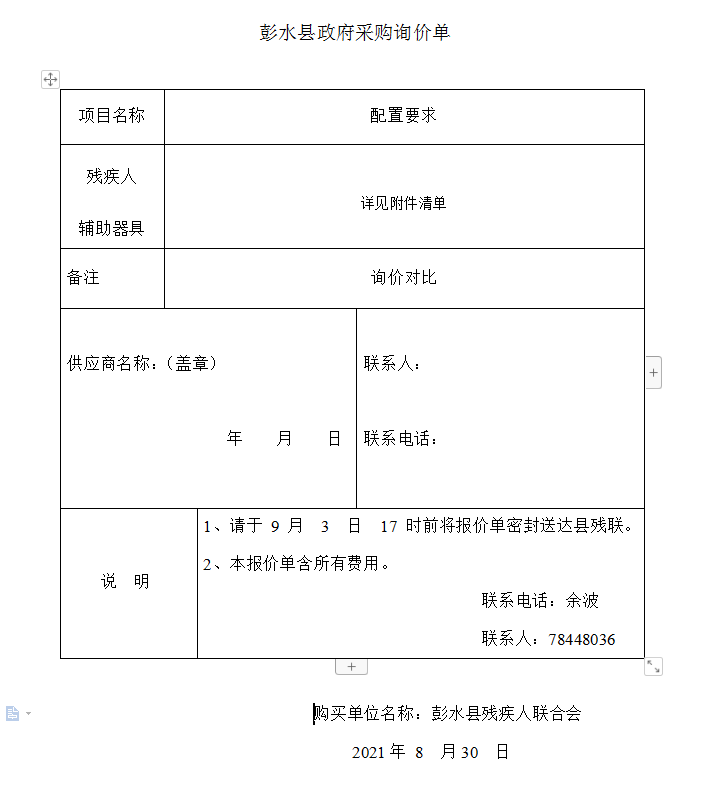 附:彭水縣政府采購詢價(jià)單。