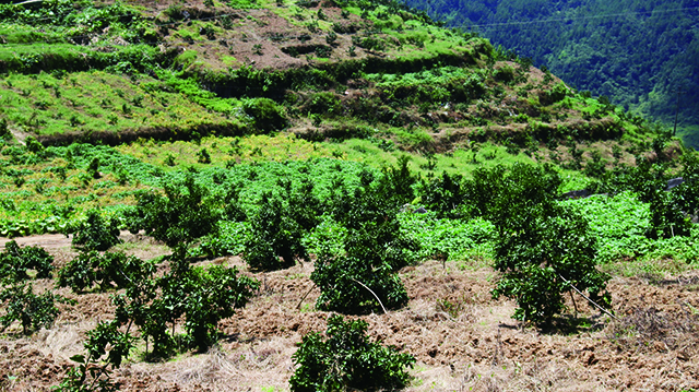月19日,走進高谷鎮(zhèn)龐溪村愛媛種植基地,漫山遍野的果樹長勢喜人,一排排樹上掛滿了小果子,讓這片曾經(jīng)的荒山重新煥發(fā)出了勃勃生機。