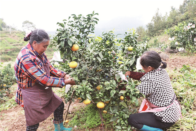 重慶彭水網(wǎng)(融媒體記者 楊春燕 攝影)近年來,高谷鎮(zhèn)龐溪村合理利用資源,積極流轉(zhuǎn)土地,憑借良好的地理位置與氣候條件,大力發(fā)展特色產(chǎn)業(yè),帶動群眾增收致富。圖為10月19日,龐溪村十余名村民正在種植基地給即將成熟的愛媛套袋。