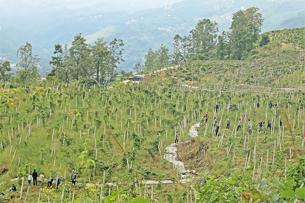 潤(rùn)溪鄉(xiāng)蓮花寺村村民正在布福娜中藥材產(chǎn)業(yè)基地基地除草
