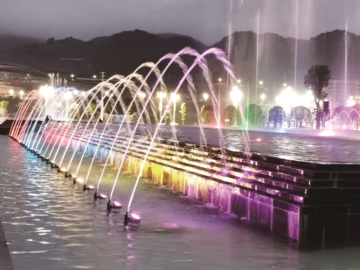 重慶彭水網(wǎng)(融媒體記者 趙勇)近日,彭水新城市民廣場修建的3個鏡面音樂噴泉建成投用,每周星期五、星期六、星期日晚上6:30到8:30開放,成為市民打卡游玩的好去處。據(jù)了解,新城市民廣場一期的占地面積為49000㎡,其中硬質(zhì)鋪裝面積為35000㎡。廣場中間建有3個長47米,寬28米的鏡面音樂噴泉水池,最高噴射水位達到30米,3個噴泉水池組成了廣場上的中軸線。噴泉水池旁邊地磚采用透水磚,能夠達到很好的滲水效果,確保地面不濕滑,不影響行人安全。