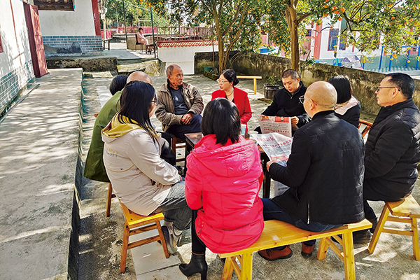 11月30日,在郁山鎮(zhèn)白池村,縣紀(jì)委監(jiān)委宣傳部干部職工和部分村民以院壩會形式共同學(xué)習(xí)黨的十九屆六中全會精神,將全會精神引向深入。 通訊員 施遠(yuǎn)琳 攝影