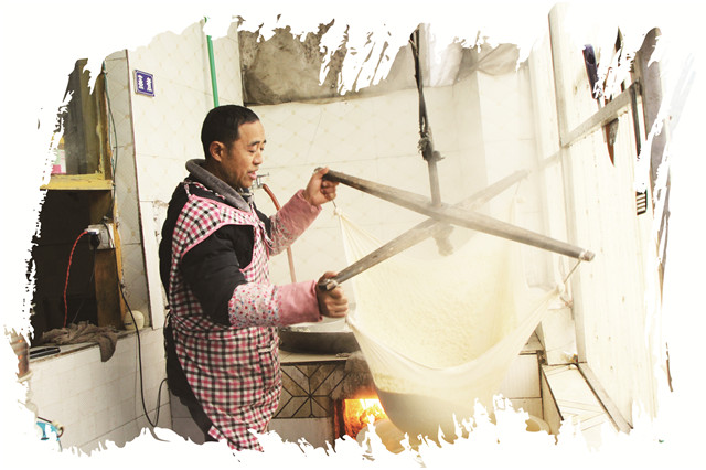 如今,說起灰豆腐的制作,最有發(fā)言權(quán)的應(yīng)當(dāng)是黃家鎮(zhèn)居民馬樹成,他從22歲開始做灰豆腐,33年來他與小小的黃豆接下了不解之緣。