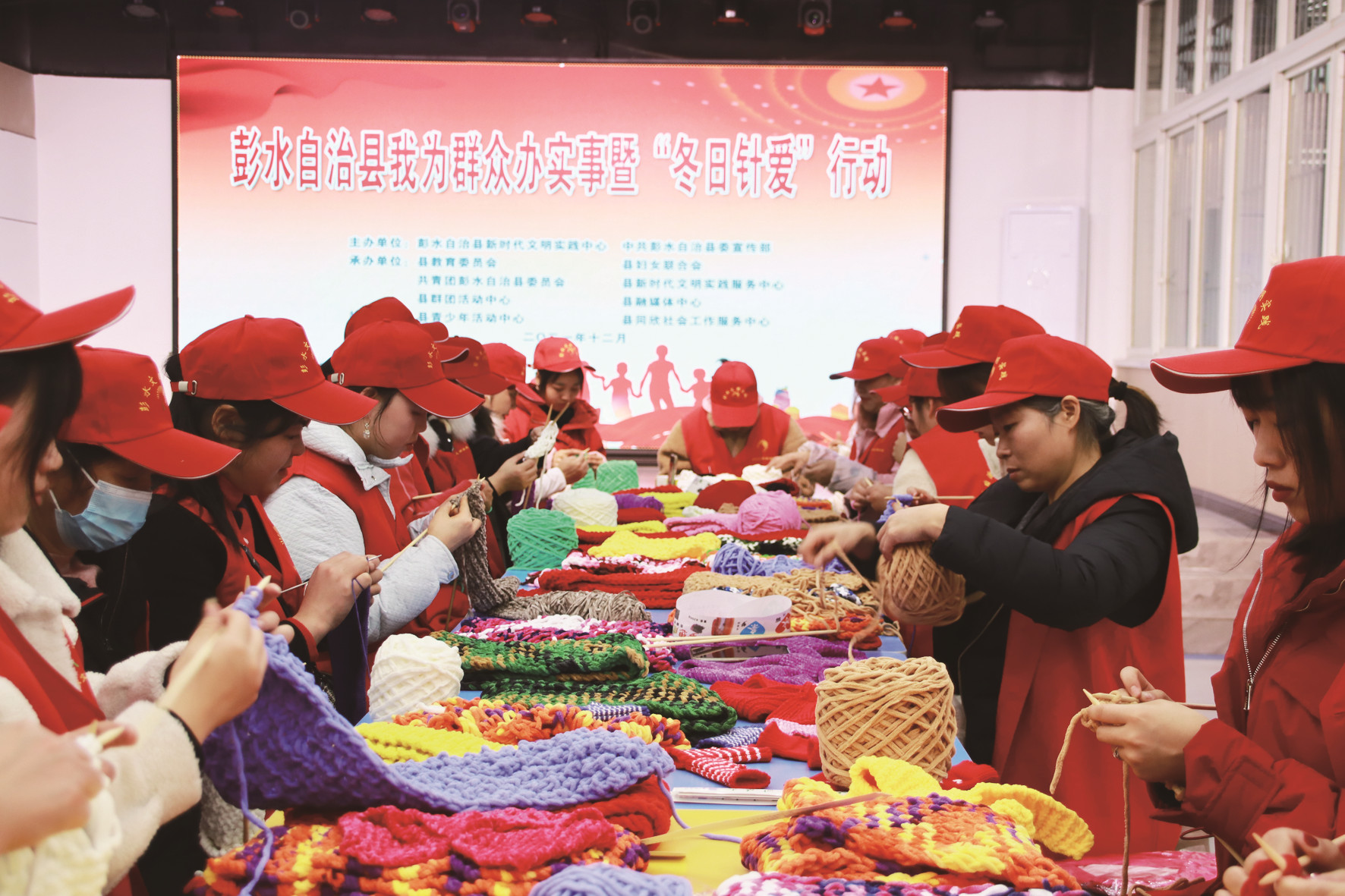 重慶彭水網(融媒體記者 張 影)12月25日,我縣舉辦“我為群眾辦實事”暨紅櫻桃“冬日針愛”主題志愿活動。活動中,志愿者們積極行動,圍坐在一起,互相交流學習,設計編織愛心織物—兒童圍巾、帽子、手套等御寒物品,為高寒凝凍山區(qū)孩子送去溫暖。圖為志愿者們在編織御寒物品。