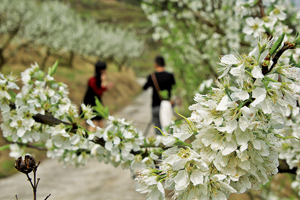 在巖東鄉(xiāng)青脆李基地,成片潔白的李花盛放如雪海卻又有著格外的靈動(dòng)、美妙之處,無論是枝頭的含苞欲放,還是迎風(fēng)的熱情綻放,都是妙不可言的風(fēng)景。這些花兒悄然傲立于枝頭,小鳥、蝴蝶在花間飛舞,人在樹下,如入花海,成為游客拍照打卡勝地。