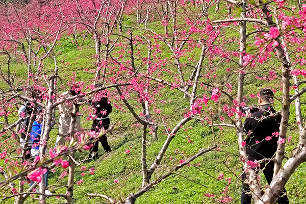 桃花李花競(jìng)相綻放春意濃