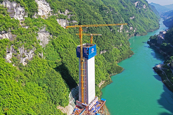 渝湘復(fù)線高速矮塔斜拉橋 亞洲第一高墩墩柱突破百米
