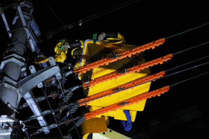 重慶彭水網(wǎng)(融媒體記者 廖唯)8月18日凌晨,國網(wǎng)彭水供電公司工作人員對漢葭街道沙沱社區(qū)10千伏東西線20號電桿處進(jìn)行帶電作業(yè),避免因作業(yè)影響居民正常用電。當(dāng)晚,輸電運(yùn)檢班組黨員服務(wù)隊(duì)利用無人機(jī)、紅外測溫儀按計(jì)劃對220千伏張彭一二三四線以及35千伏東白一二線、東關(guān)線等重要輸電線路開展紅外測溫及交叉跨越夜巡等工作。通過深夜負(fù)荷低時(shí)進(jìn)行帶電作業(yè),晚上負(fù)荷高時(shí)進(jìn)行夜巡測溫等方式,及時(shí)發(fā)現(xiàn)風(fēng)險(xiǎn)、排查隱患、消除故障,全力保障居民用電。