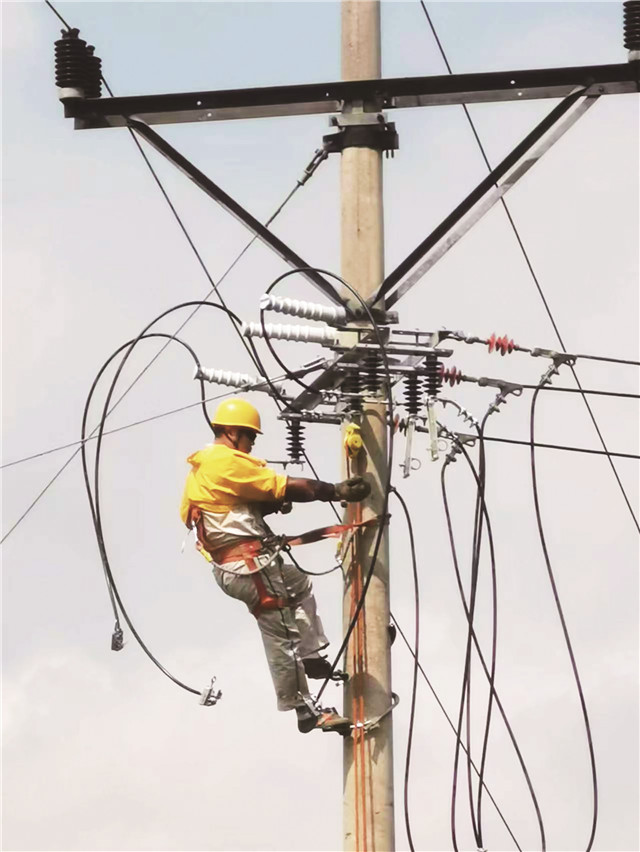 隨著開關(guān)的斷開和接地線的裝設(shè)完畢,搶修工作正式開始,時間一點一點的推移,搶修人員的衣服已全部濕透。片刻功夫便大汗淋漓,厚厚的工作服被汗水裹濕了,像粘上了糊槳一樣緊緊地貼在身上。雖然摸上電桿燙手,但為了下塘社區(qū)居民盡快用上電,搶修人員硬是咬牙堅持,全身心投入搶修作業(yè)中。