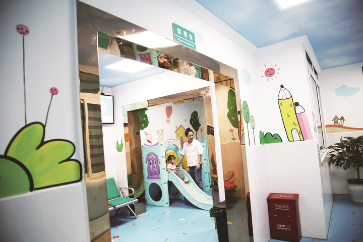 記者注意到,整個(gè)接種區(qū)內(nèi),布滿卡通圖案的墻壁、舒適美觀的沙發(fā)凳、留觀區(qū)內(nèi)的兒童滑梯,眼前的場景讓人仿佛置身兒童樂園。不少剛接種完的孩子在家長的陪同下正在留觀區(qū)玩耍。