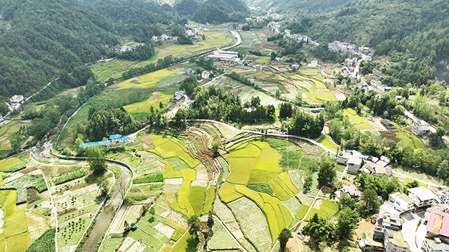 重慶彭水網(wǎng)(作者:李紹標(biāo))9月5日,航拍下的太原鎮(zhèn)區(qū)陽村,錯落有致的房屋,金黃的稻浪,構(gòu)成一幅秀美鄉(xiāng)村畫卷。近年來,太原鎮(zhèn)以生態(tài)優(yōu)先為導(dǎo)向,堅持把農(nóng)村人居環(huán)境整治作為實施鄉(xiāng)村振興戰(zhàn)略的基礎(chǔ)民生工程,實施美麗鄉(xiāng)村亮化、美化、硬化工程,不斷改善鄉(xiāng)村面貌,著力打造山好、水好、空氣好的綠色秀美家園,推動美麗鄉(xiāng)村發(fā)展轉(zhuǎn)型升級。