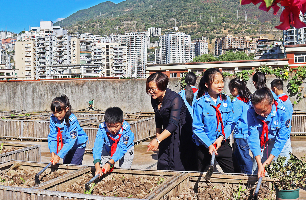 昌建敏與學(xué)生們一起進(jìn)行課課間勞作。 融媒體記者 唐 源 攝影