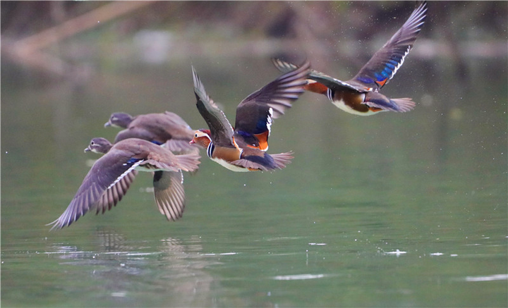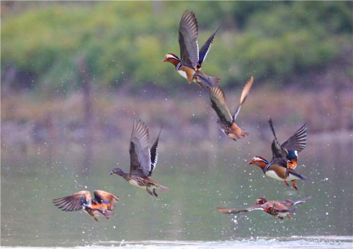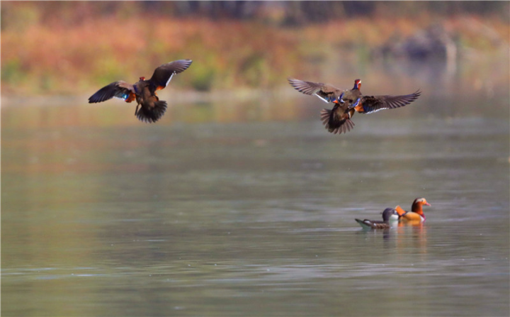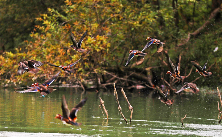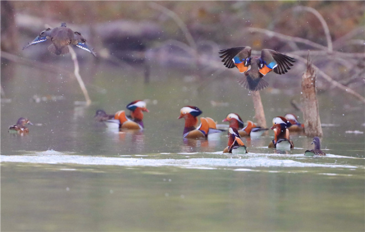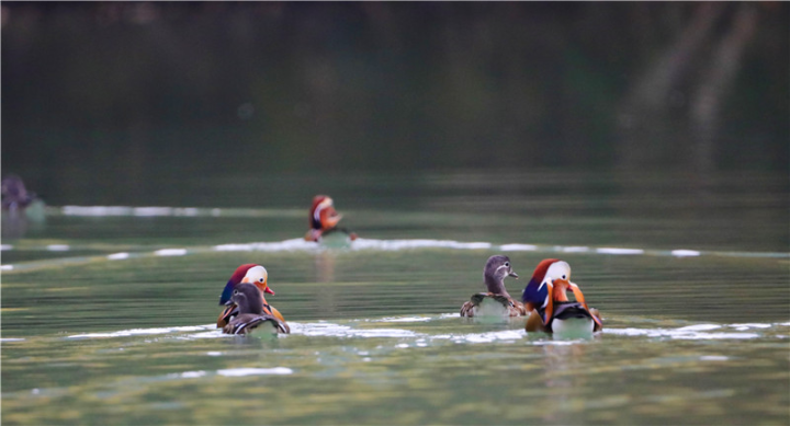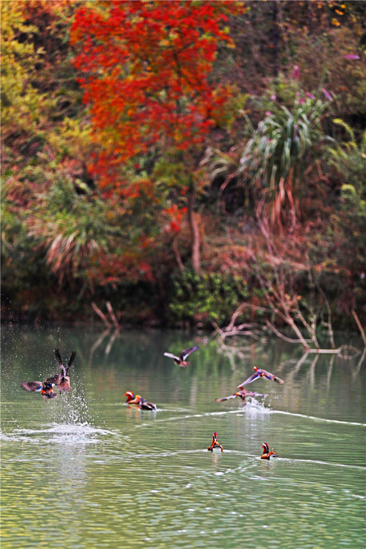11月9日,在彭水諸佛江鹿角段的江面上,一群國家二級(jí)保護(hù)動(dòng)物鴛鴦?wù)谒嬉捠场蛩?,多彩的羽毛與青山碧水相映成趣,構(gòu)成一幅幅美麗的生態(tài)畫卷。