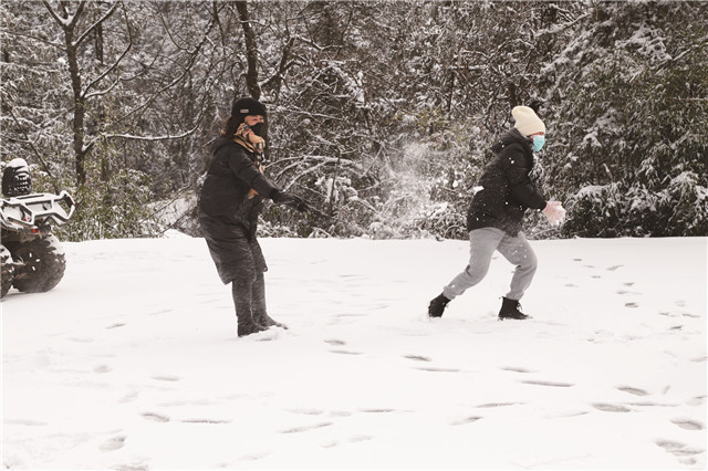 市民們也趁著空閑時間,紛紛上山觀景,賞雪游玩,打雪仗、堆雪人,和雪來個親密接觸,體驗冰雪世界,感受銀裝素裹之美,暢享降雪帶來的樂趣。