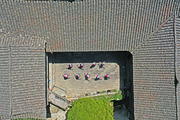 梅子埡鎮(zhèn)佛山村7組的古苗寨,游客身著苗族服裝,正在苗寨的院壩里學著跳苗族傳統(tǒng)舞蹈,體驗不一樣的苗族文化。 融媒體首席記者 趙 勇 攝影